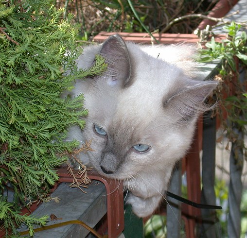 Leelee mit ca. einem Jahr an ihrem Lieblingsort, dem Bett (links) und in den Blumenkästen